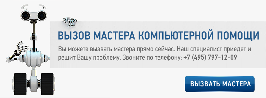 Чтобы вызвать IT-специалиста, просто позвоните нам по номеру: +7 (495) 797-12-09. Менеджер договорится с Вами о времени визита мастера и назовет примерную индивидуальную стоимость компьютерной помощи.